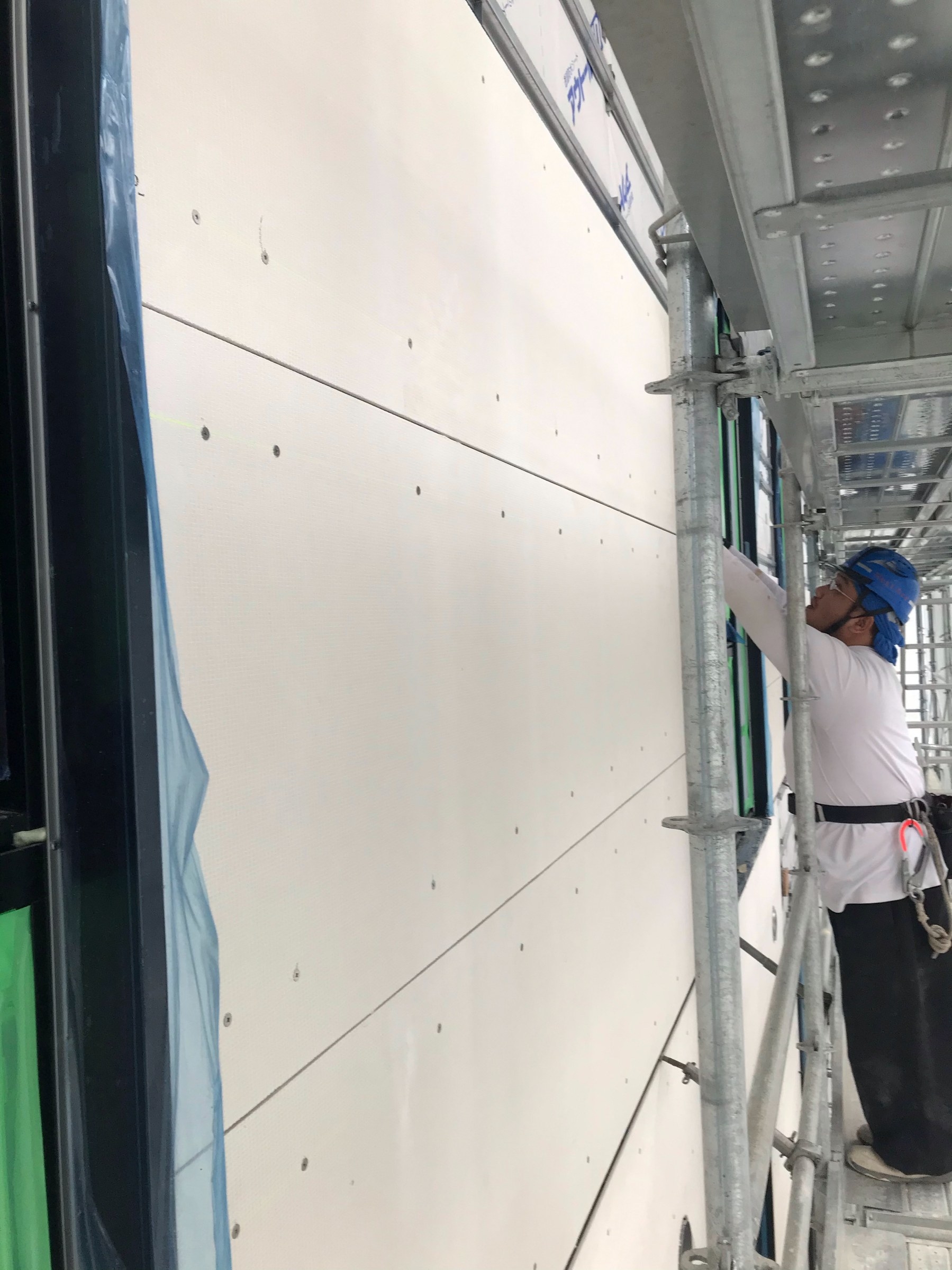 北海道ニセコにて、ホテル外壁、タイル貼り下地材として、MTSボード使用していただきました。